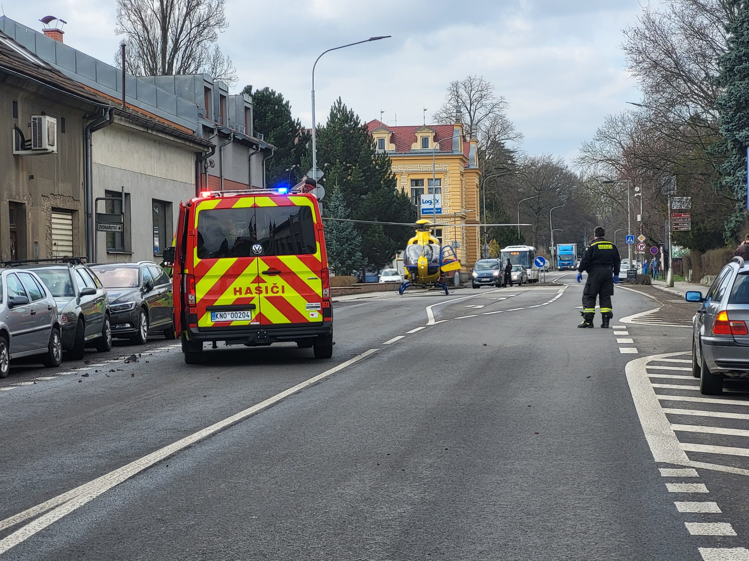Na místě zasahovala Zdravotnická záchranná služba Královéhradeckého kraje, Policie České republiky, Jednotný sbor dobrovolných hasičů Kostelec nad Orlicí a vrtulník Letecké záchranné služby. Hlídka městské policie a hasiči usměrňovali dopravu a zajistili prostor pro přistání.